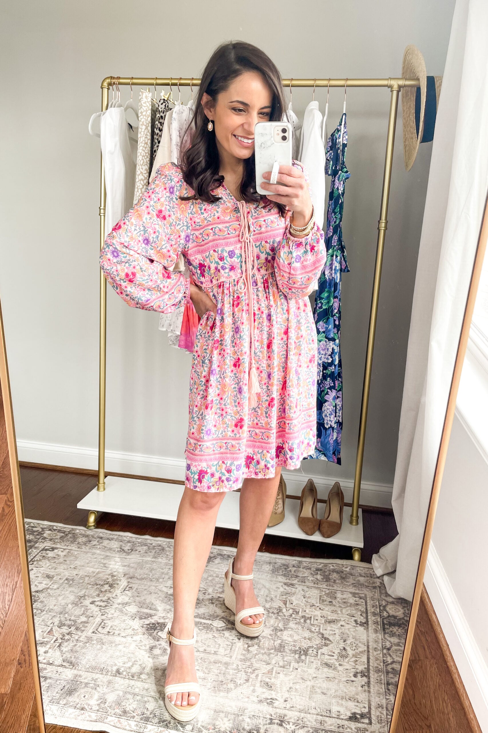 My favorite thing from the try-on I shared on Instagram Stories is this boho dress from Amazon. This dress is really popular on Instagram, but I’ve mostly seen it in the maxi version. I didn’t think the maxi version would work for me, so I passed on it. Then I found this shorter version and loved it so much I ordered it in two prints. It isn’t lined, but its not see through – I feel like you have to note that when you’re talking about something from Amazon. You will need to wear something under it, like a cami, as the ties at the top leave a gap you can see through, but I think this is going to make a great dress for summer. I know it’s going to be packed for my upcoming beach trip for sure!