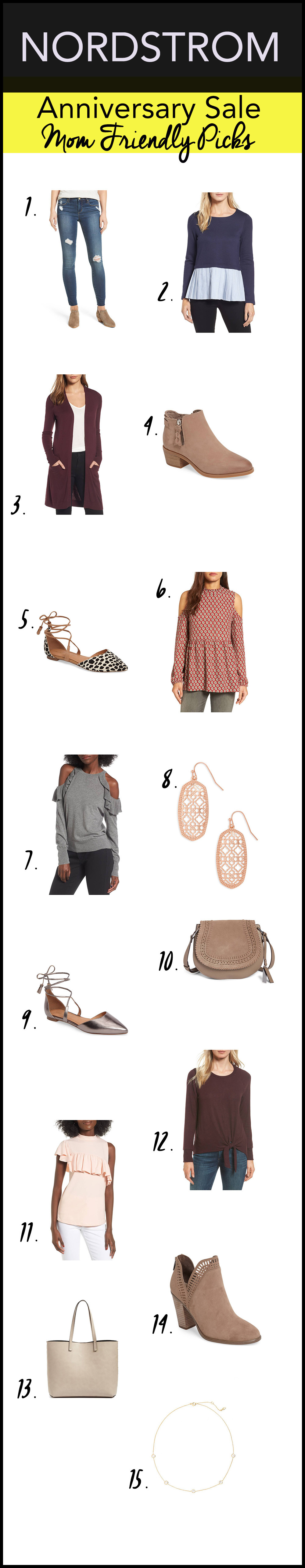 Oh the Nordstrom Anniversary Sale, how glorious you are! If you’re a card holder, your access starts today, but for everyone else, you’ll have to wait until July 21! Although quantities are limited (so you should shop fast) the sale will run through August 6th! I love to use the Anniversary sale as a way to stock up on shoes and bags, but there are a few other things I’ve been eyeing for my fall wardrobe. So, I’ve rounded up my favorite, mom friendly picks just for you. As much as I want to walk around in sky high heels and off the shoulder tops, let’s be real, I have two kids! My picks are casual, yet cute and fully functional. Plus, they’re all affordable and under $100. (With the exception of a handbag and a pair of booties!)