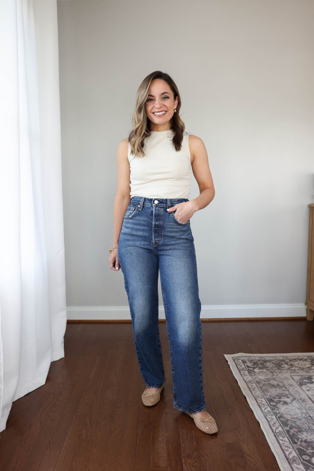 If you’ve struggled to find Levi’s jeans that actually work for a petite frame, I hope this helped narrow it down. The right pair really comes down to a balance of inseam, rise, and overall proportions—and once you find that sweet spot, it makes all the difference. These styles are a great place to start if you want that classic Levi’s look without the guesswork (or a trip to the tailor).