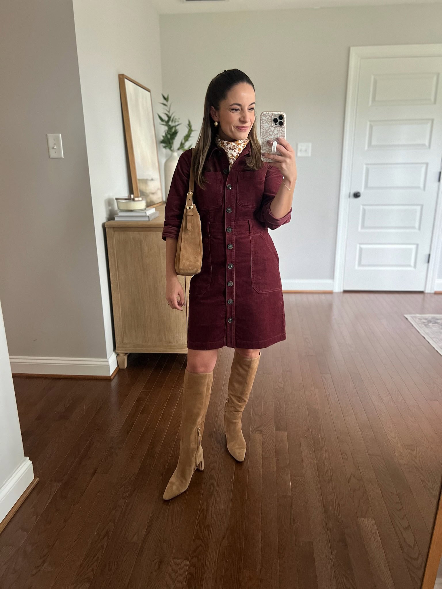 Looking for more ideas? Check out my post on knee-high boots styled with dresses for petites for outfit inspiration.